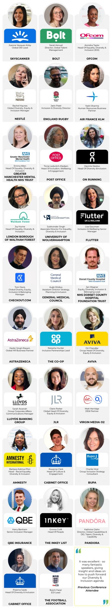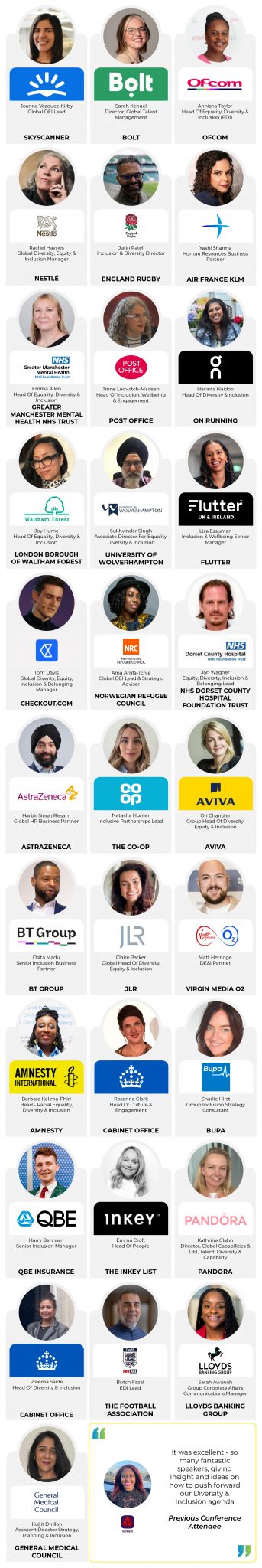 Europe’s premier event for D&I leaders committed to driving real, transformative change. In just one impactful day, 30+ powerhouse D&I and HR leaders take to the stage – equipping you with fresh strategies, actionable insights, and innovative tools to deliver D&I through change, ensure lasting impact, deliver authentic messaging and maintain relevancy in the challenges of 2026 and beyond!